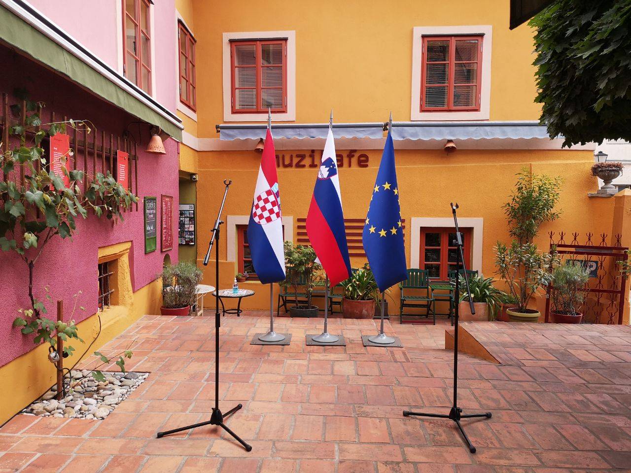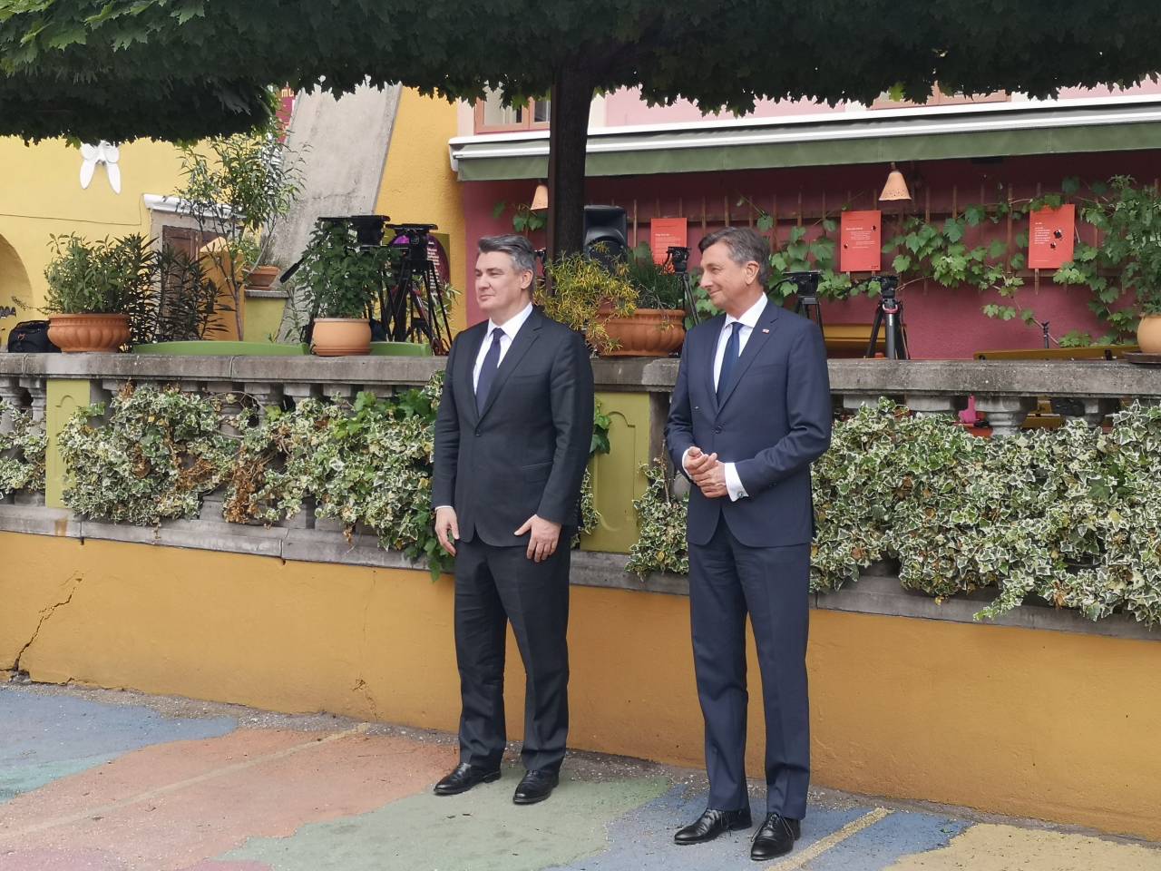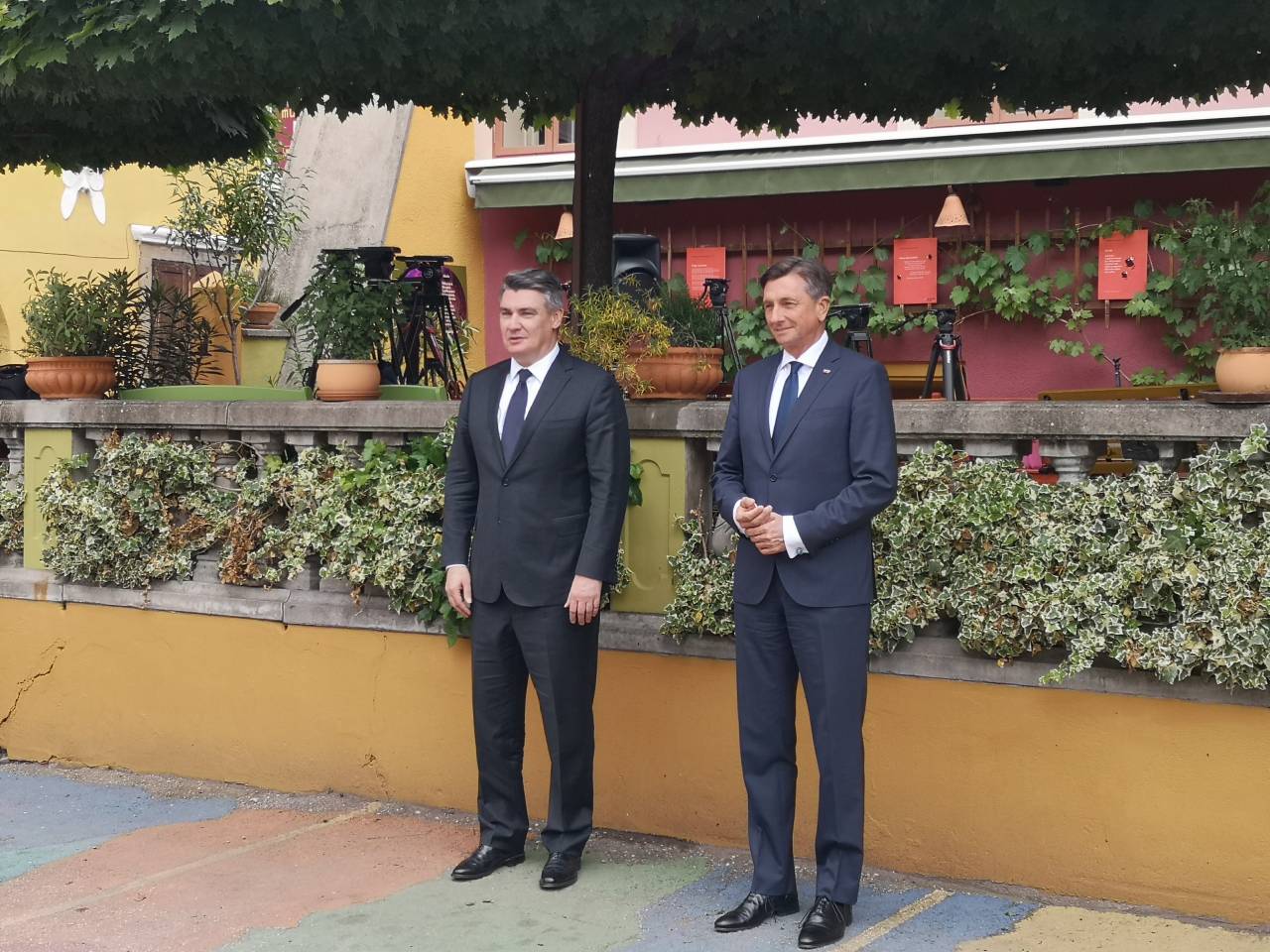 Pahor je ob prihodu Milanovića povprašal, ali je bila pot prijetna. Ta mu je pritrdil. Predsednika sta govorila na notranjem dvorišču MuziKafeja. Kasneje bosta izjavo za javnost podala na terasi lokala.