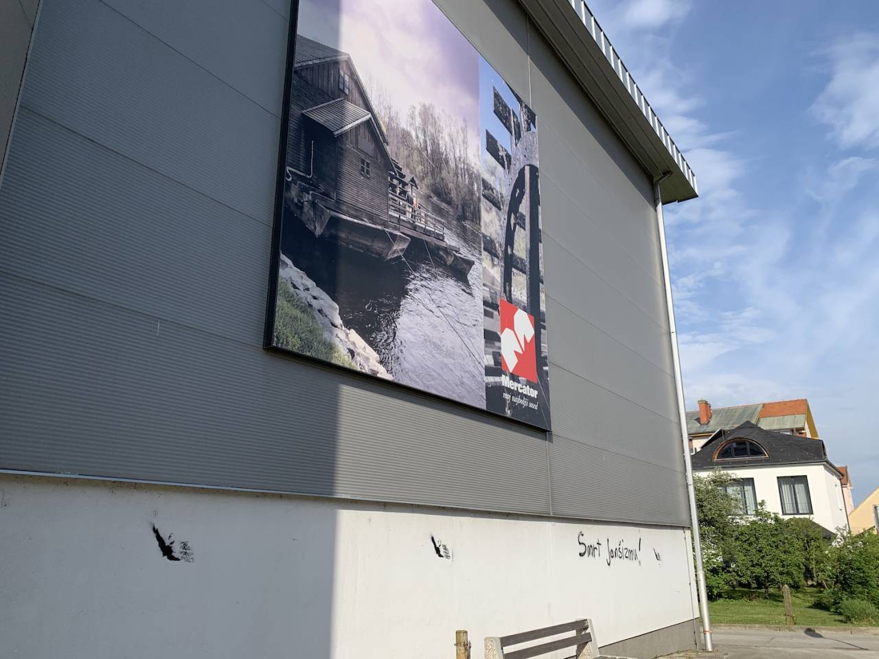 Pred Mercatorjem v središču vasi je grafit z napisom »Smrt janšizmu«, na mostu na Gregorčičevi ulici pri Vrtnem centru Kalia pa je več grafitov. »Janša gotov si«, »Smrt janšizmu, svoboda narodu«, »Nisi kriv? Ker te tvoji preiskujejo.«