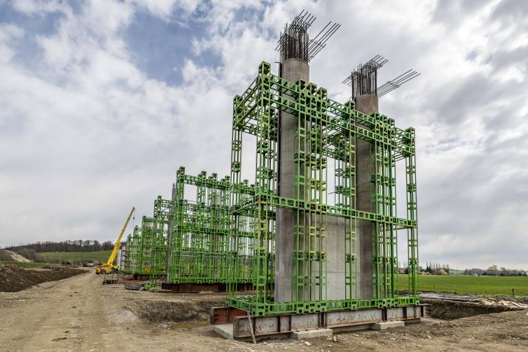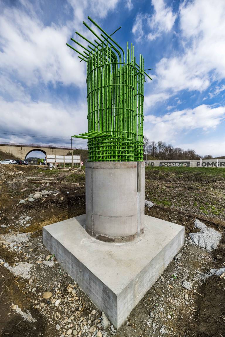 Trenutno je v izvedbi globoko temeljenje ter gradnja stebrov, izvaja se priprava podpornega odra za izvedbo prekladne konstrukcije.