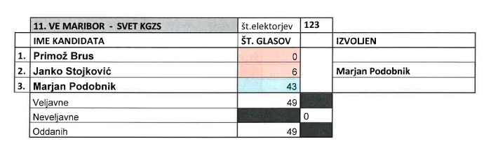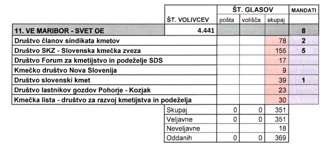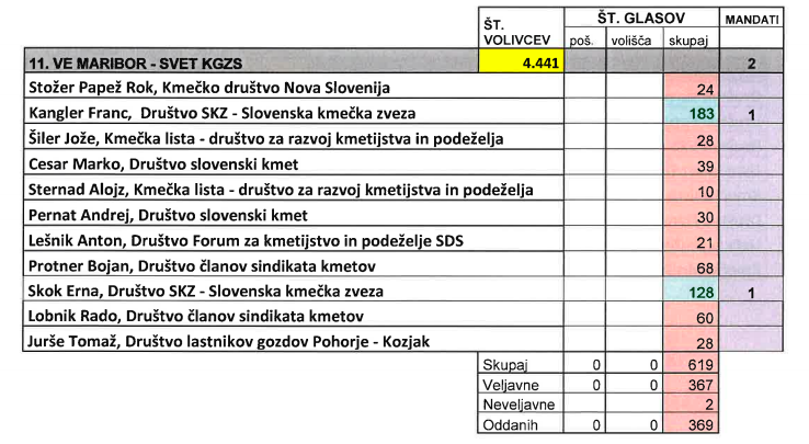 Iz skupine fizičnih oseb se je za izvolitev v najvišji organ krovne organizacije kmetov v mariborski volilni enoti potegovalo enajst list, kot kažejo neuradni rezultati, pa je bilo oddanih 369 glasov, od tega jih je bilo veljavnih 367.