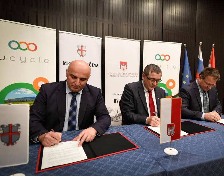 V Vetrinjskem dvoru so v petek župan Mestne občine Maribor Andrej Fištravec, župan Mestne občine Ptuj Miran Senčar in župan občine Šentilj Štefan Žvab podpisali namero o sodelovanju na področju krožnega gospodarstva.