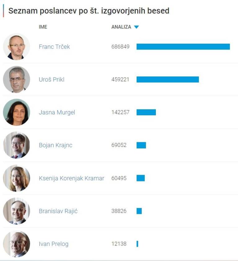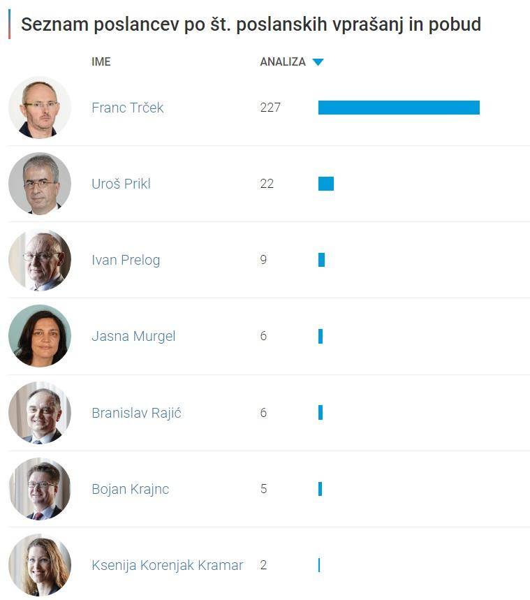 - Ksenja Korenjak Kramar je podala le 2 poslanski vprašanji ali pobudi, Franc Trček pa kar 227. Parlamentarno povprečje je 51.