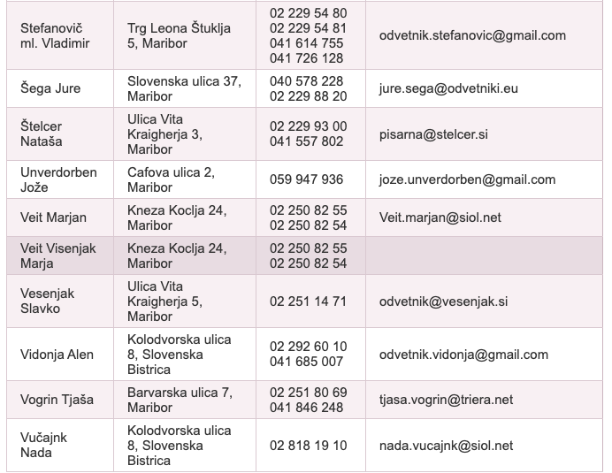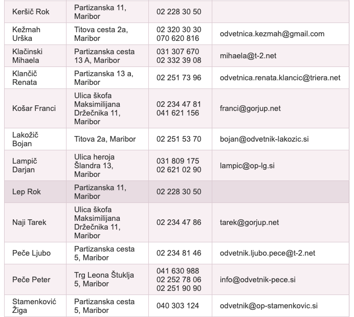 Brezplačno pravno pomoč bo nudilo tudi preko trideset odvetnikov iz Maribora, ki si jih lahko ogledate na spodnjem seznamu.