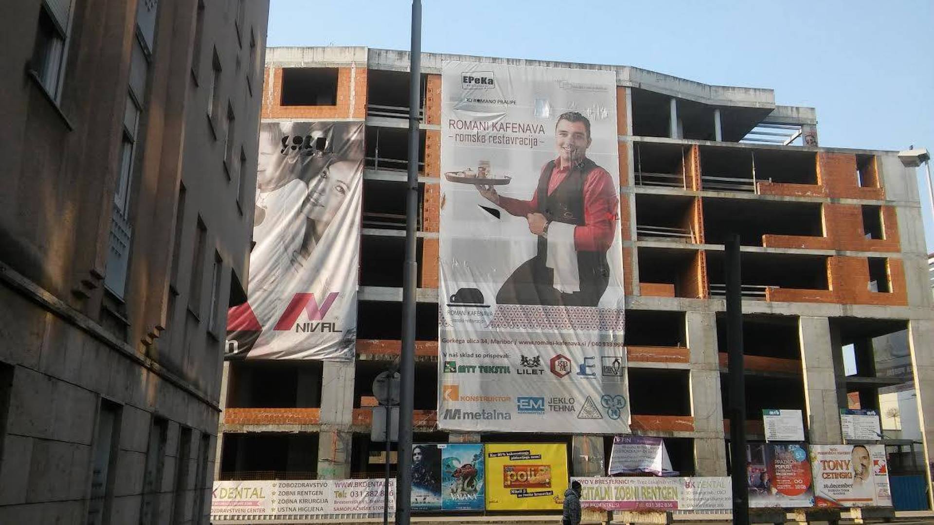 Zgradba, v kateri so bila predvidena stanovanja in poslovni prostori, nedokončana v tretji gradbeni fazi stoji že vse od leta 2010, ko je kmalu zatem, tako kot skoraj vsi mariborski gradbinci, propadlo tudi podjetje Blaža Mlinariča.