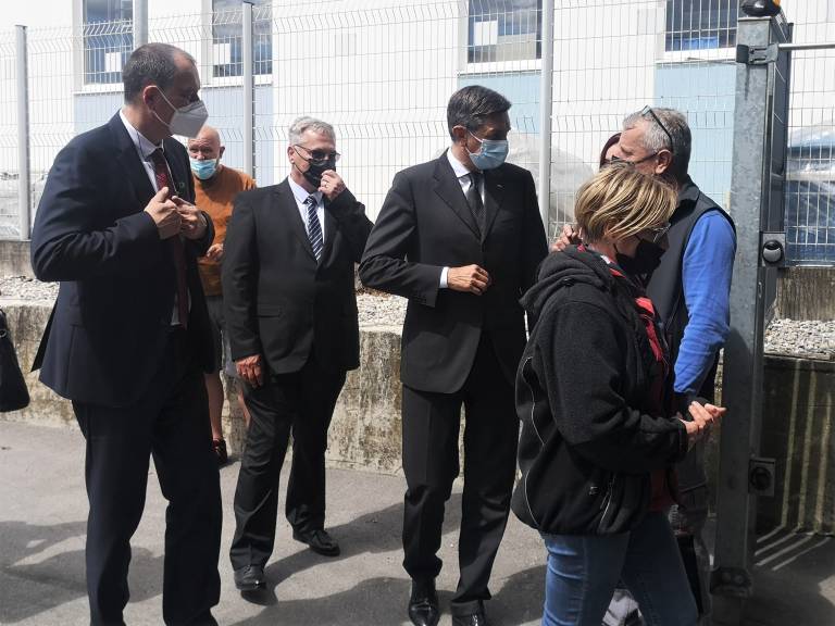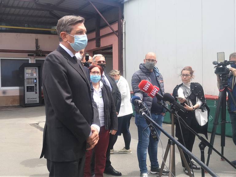 Zaposlene je nato nagovoril predsednik republike Borut Pahor, ki je izrazil hvaležnost, da so ga sprejeli. Pojasnil je, da mora pri takšnih občutljivih zadevah paziti na svoje omejene pristojnosti in da ne pride do konflikta interesov. »Ampak ko sem slišal za vaše težave, se mi je zdelo, da moja beseda v prid dialogu ne bo odveč,« je dejal.