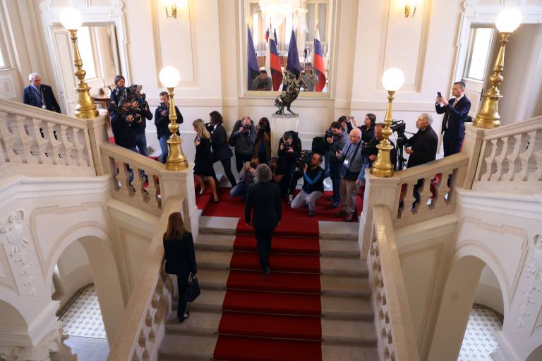 Pahor je Goloba na neformalni pogovor povabil v skladu s tradicijo in običaji, je dejal v predsedniški palači. »Z najverjetnejšim mandatarjem sva se pogovorila zlasti o postopkih, najini vlogah in pristojnostih,« je pojasnil.
