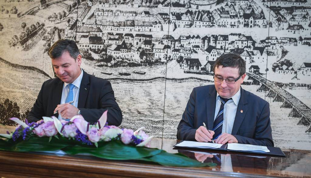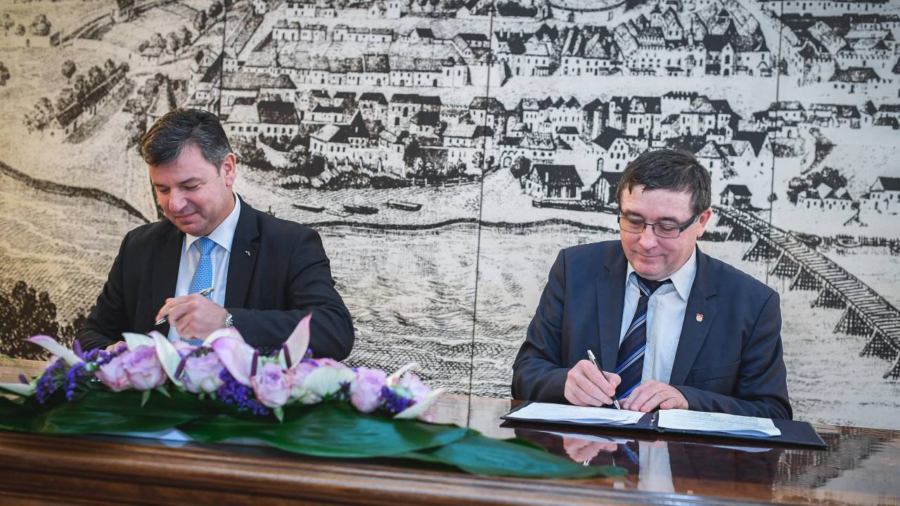 Župan Mestne občine Maribor Andrej Fištravec in minister za infrastrukturo Peter Gašperšič sta podpisala sporazum o sofinanciranju za podaljšanje Ceste proletarskih brigad v Mariboru.