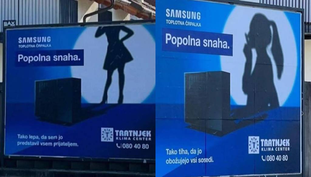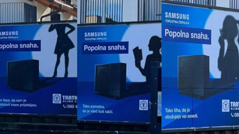 Po Sloveniji je v zadnjih dneh mogoče opaziti nenavadne obcestne plakate soboškega podjetja Klima center Tratnjek, ki oglašujejo Samsung toplotno črpalko.