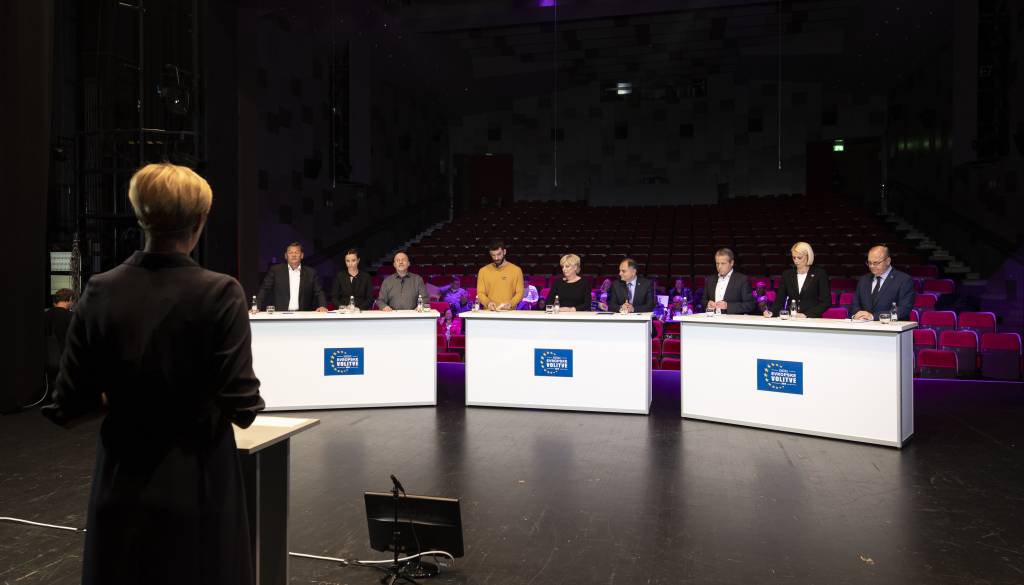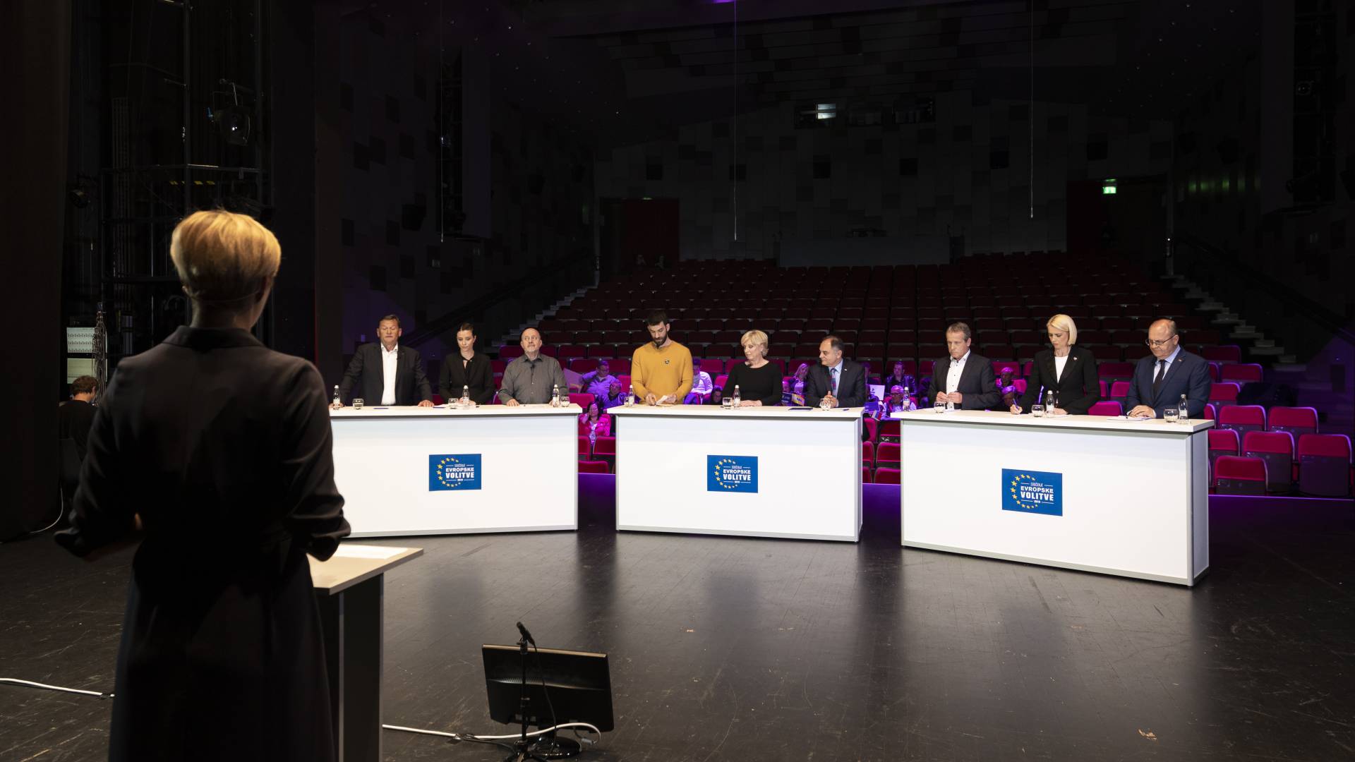Predstavniki devetih slovenskih parlamentarnih strank na soočenju v Murski Soboti.
