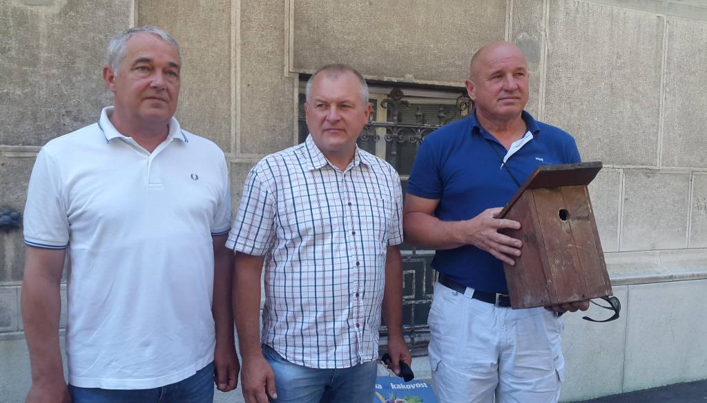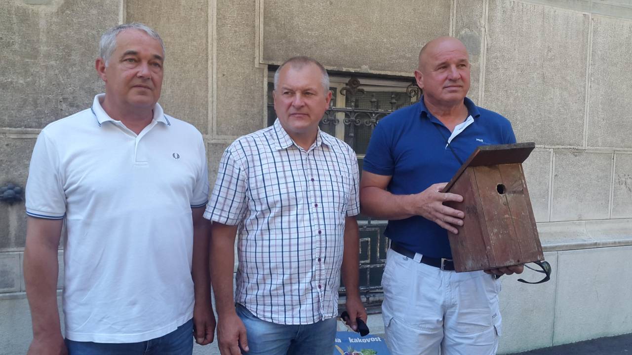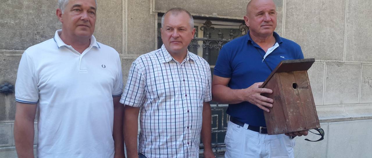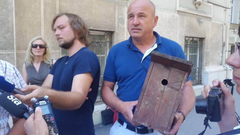 Nekdanji mariborski župan Franc Kangler je s ptičjo hišico v rokah pred okrožnim sodiščem v Mariboru komentiral zaustavitev postopka v zadevi ptičja hišica in pravoslavna cerkev.