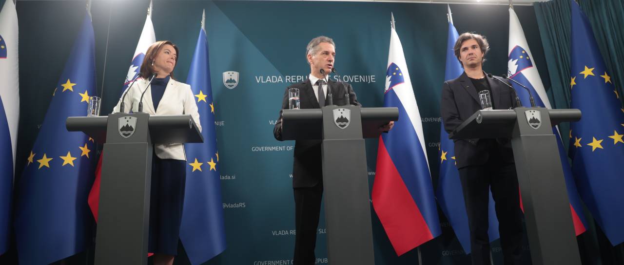 Golob je skupaj s podpredsednikoma vlade, predsednico SD Tanjo Fajon in koordinatorjem Levice Luko Mescem, na današnji novinarski konferenci povzel dosedanje delo. Poudarili so, da je mandat zaznamoval spoštljiv dialog, solidarnost in »da ne puščajo nikogar zadaj«.