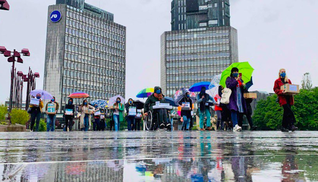 V državni zbor je gibanje prineslo 48.000 overjenih podpisov za razpis referenduma. Maja Koražija, članica Instituta 8. marec, se je zahvalila vsem delavcem in delavkam na upravnih enotah.
