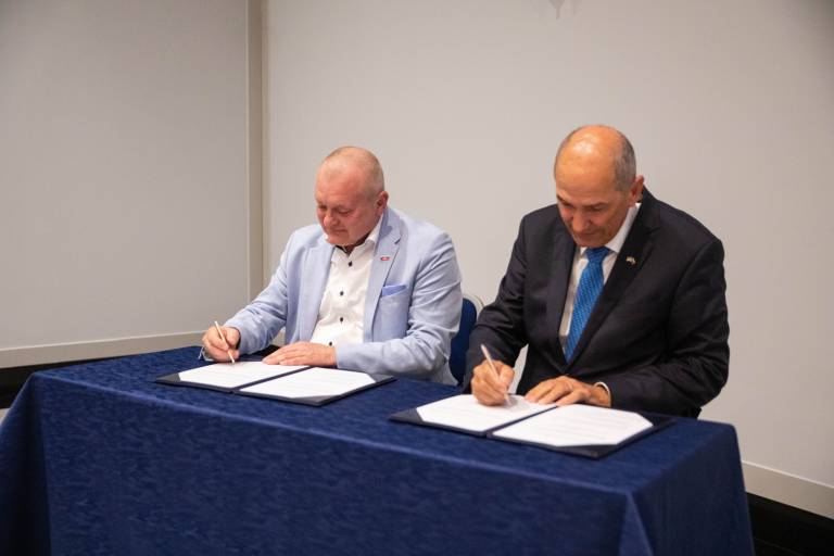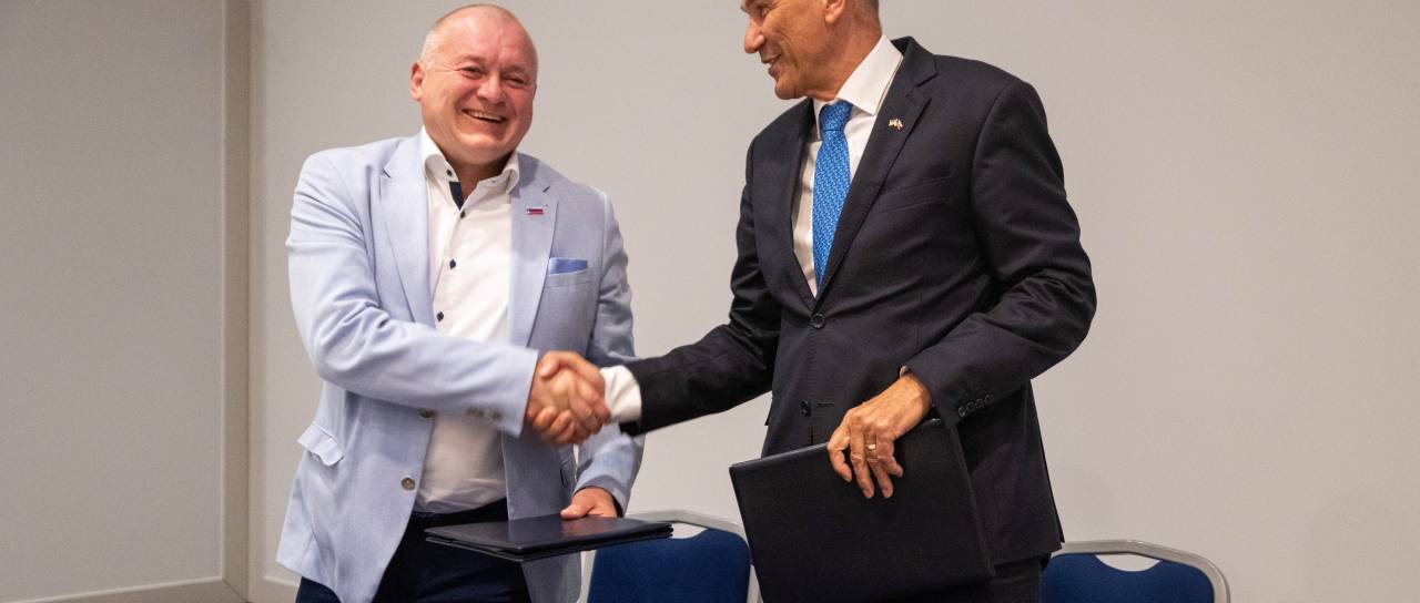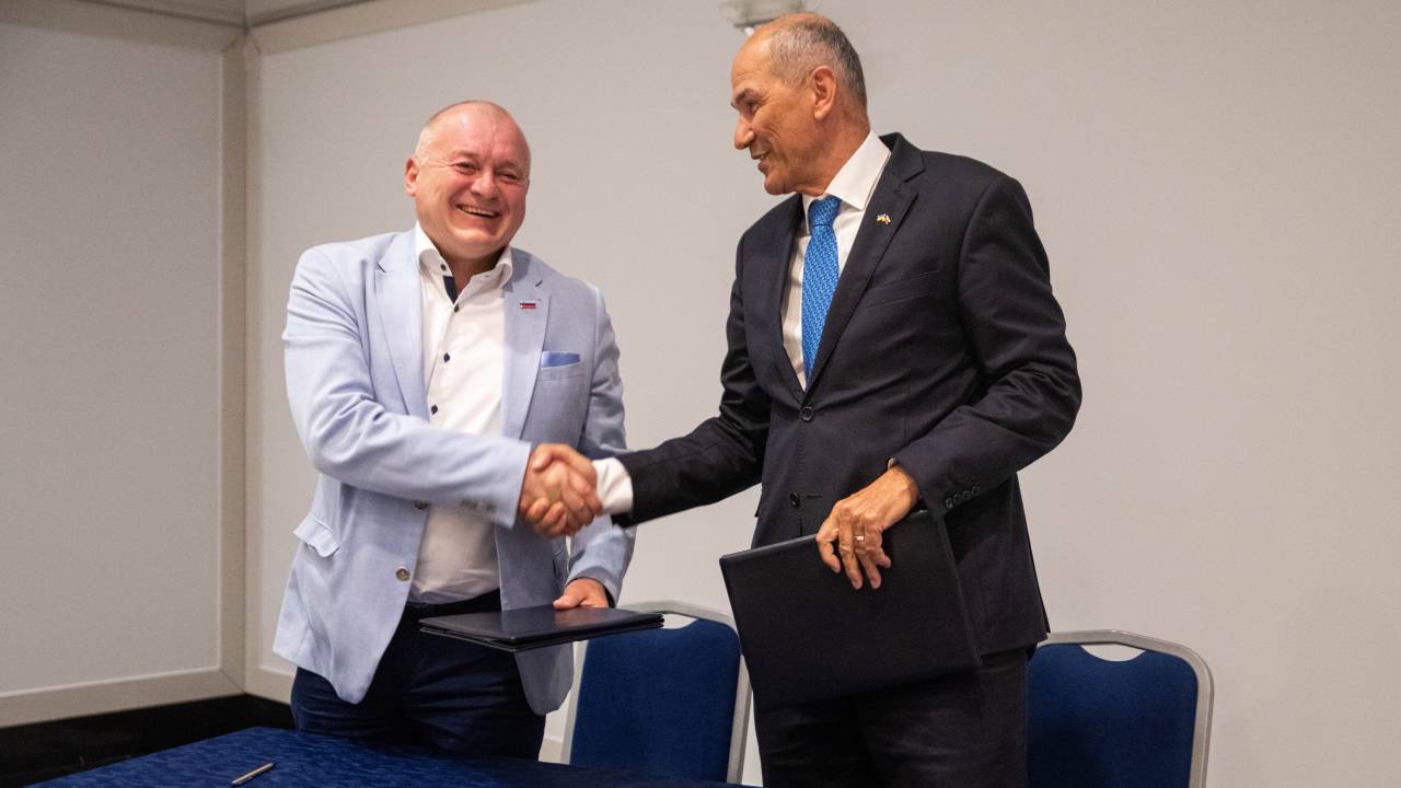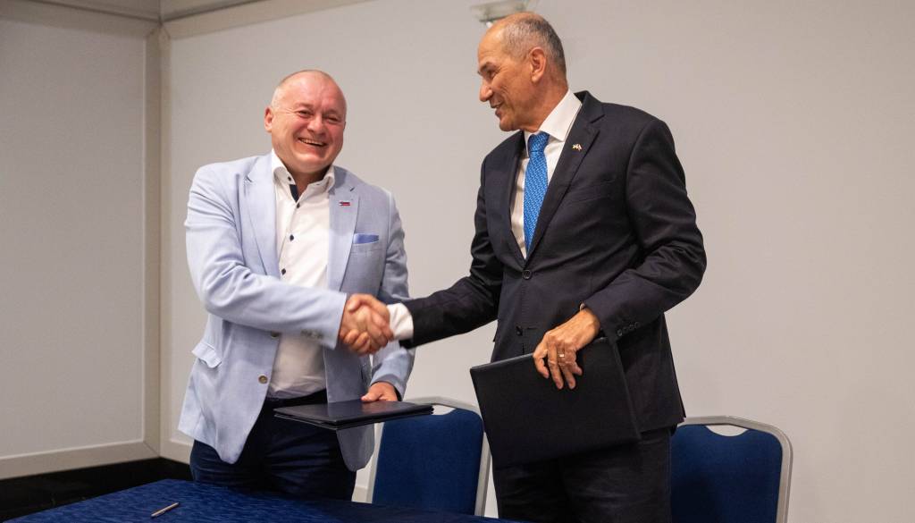 Predsednika SDS Janez Janša in Nove ljudske stranke (NLS) Franc Kangler sta včeraj v Mariboru podpisala sporazum o pridružitvi NLS k SDS.