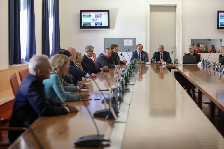 Župan Mestne občine Maribor Saša Arsenovič je skupaj s podžupani Heleno Kujundžić Lukaček, Gregorjem Reichenbergom in Samom Petrom Medvedom v petek v Mariboru gostil veleposlanike in predstavnike tujih veleposlaništev v Sloveniji.