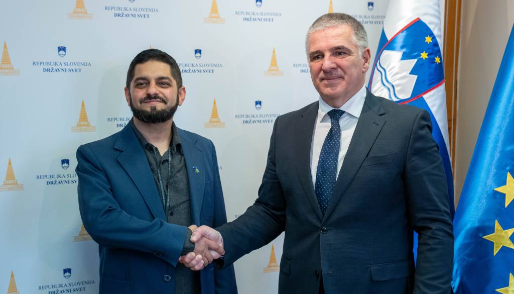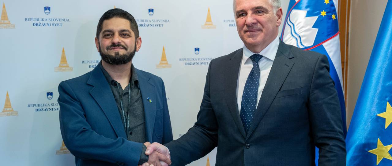 Predsednik Državnega sveta Republike Slovenije Marko Lotrič je v Ljubljani sprejel predstavnika romskega društva Sprememba takoj Murima Baftiara, ki vodi društvo, ustanovljeno decembra 2023 za pomoč romski mladini.
