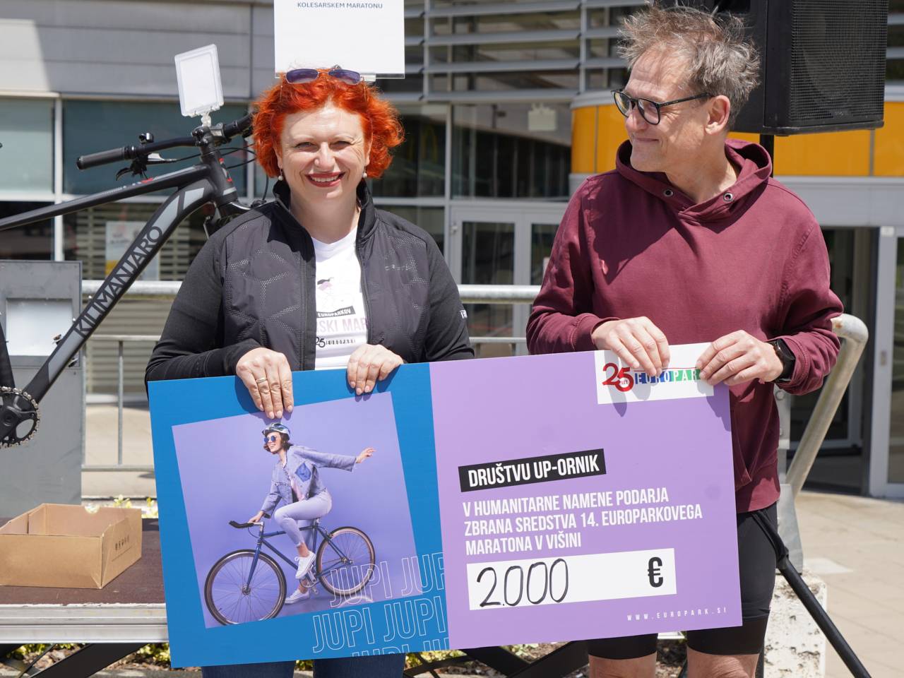 Tako kot pretekla leta je bil tudi letošnji Europarkov kolesarski maraton zaznamovan z dobrodelno noto. Vsa zbrana sredstva iz prijavnin so v Europarku namenili društvu UP-ornik, ki s svojimi programi pomaga socialno ogroženim posameznikom in družinam.