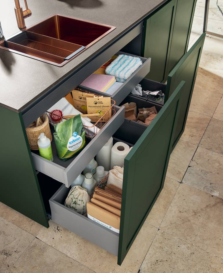 Za organizacijo kuhinje boste veliko naredili, če boste izbirali praktične kuhinjske elemente. Da bo vse za kuhinjo v njih lažje dostopno, uporabite predale, ki se lahko popolnoma odprejo, ter izbirajte kuhinjske omarice z izvlečnimi in vrtljivimi vložki.