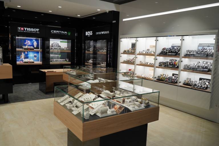 Med blagovnimi znamkami bo mogoče kupiti izdelke največjih imen v industriji, kot so Boss, Philipp Plein, Michael Kors, Calvin Klein, Casio, Fossil, Emporio Armani, Guess, Armani Exchange, Tommy Hilfiger in druge, pri nakitu pa zlasti izstopajo evropske blagovne znamke, kot so Morellato, PDPaola in večno eleganten Coeur De Lion.