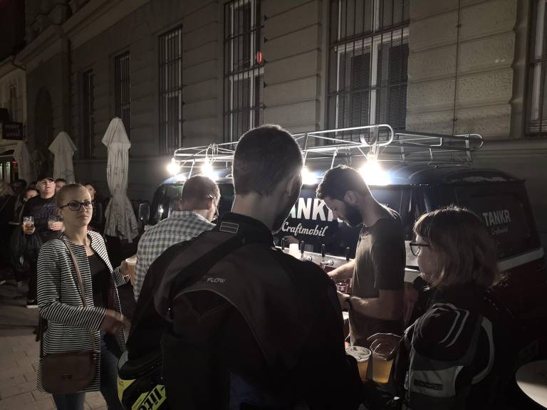 Sinoči je na pobudo Pivarne na Poštno ulico zavil Craftmobile TanKR, ki je mimoidočim in obiskovalcem ulice ponujal – nekatera kar premierno, saj jih v Mariboru še ni bilo moč poskusiti – točena kraft piva.