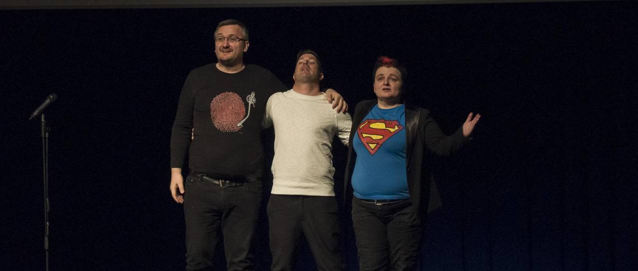 "Slovenka rojena na Hrvaškem, Bosanec, rojen v Sloveniji, ki je moral postati Srb, ter čistokrven Slovenec, ki je odraščal v Kranju, vstopijo v bar… To ni začetek vica, ampak začetek plodnega sodelovanja treh ustvarjalcev na področju humorja. Predstava govori o tem kako so jih okoliščine zaznamovale, kako so odraščali, kakšni so postali, kaj jih inspirira in kaj jih nasmeji. Oni so drzni, sproščeni, nadarjeni in predvsem zelo zelo smešni. Skupaj imajo več kot 30 let ustvarjanja vsebin na odru, televiziji in radiu. Z razlogom so še vedno zelo aktivni in vse bolj zaželeni," so zapisali.