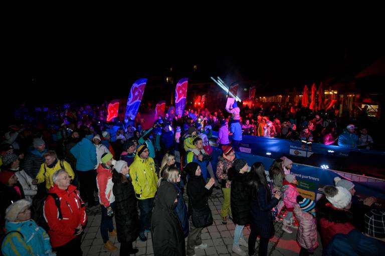 Zvečer je, kot se za velike smučarske prireditve spodobi, sledila slavnostna otvoritev tekmovanja, ki jo je s svojim glasbenim program pospremil glasbenik Marko Soršak Soki, ob predstavitvi vseh klubov pa je sledil spust zastav udeleženk v spremstvu bakel po Snežnem stadionu ter po atraktivni točki z neonskim laser šovom še čisto pravi ognjemet.