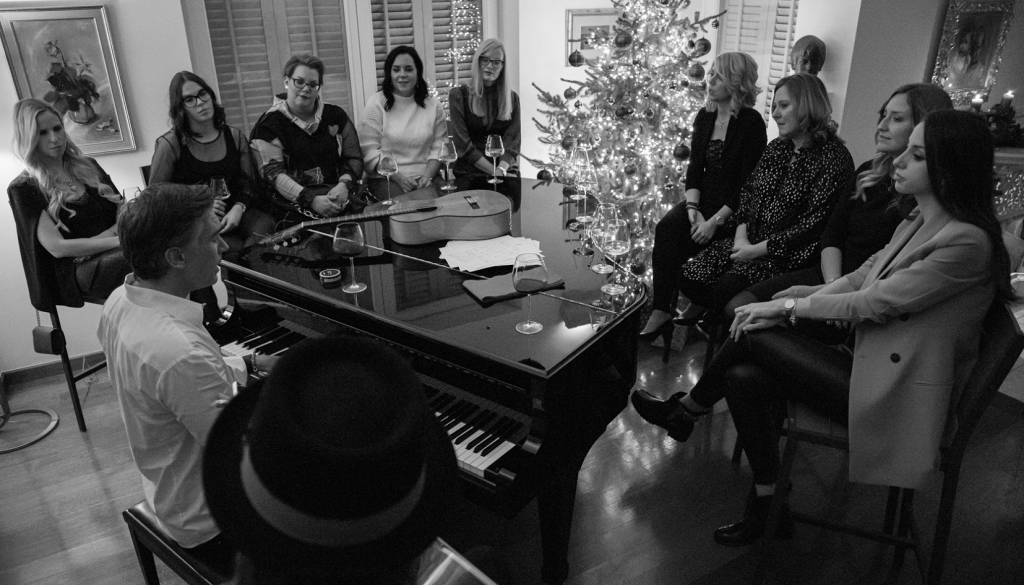 Prav poseben in oseben koncert pri Janu Plestenjaku doma za izbrano publiko devetih srečnic.