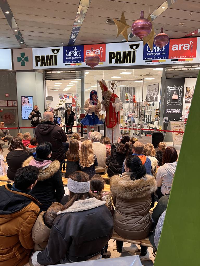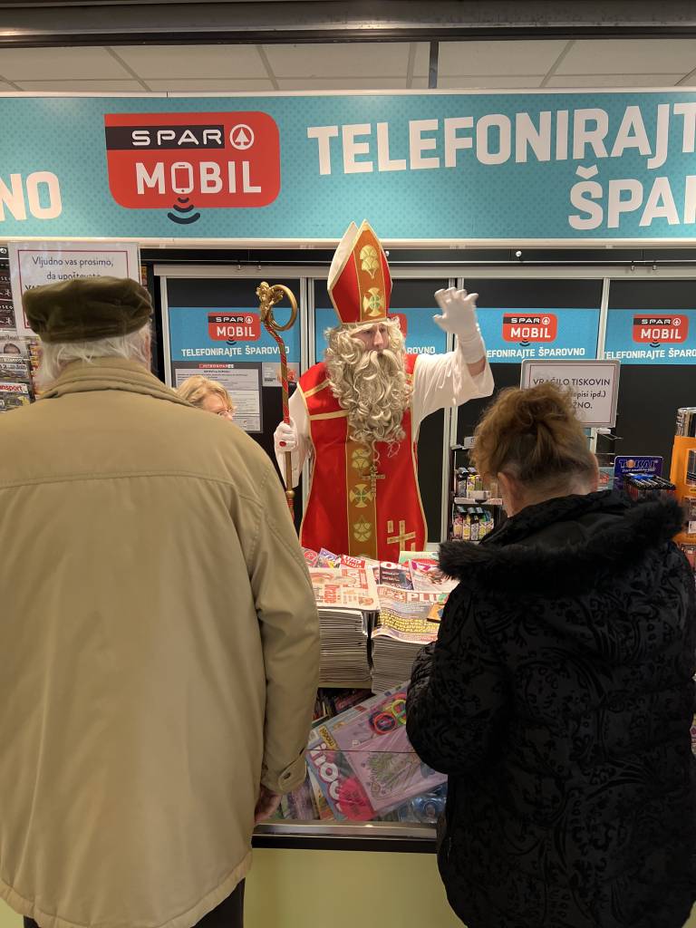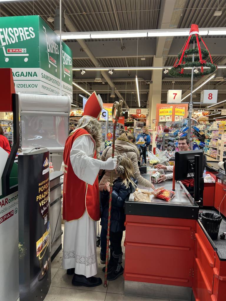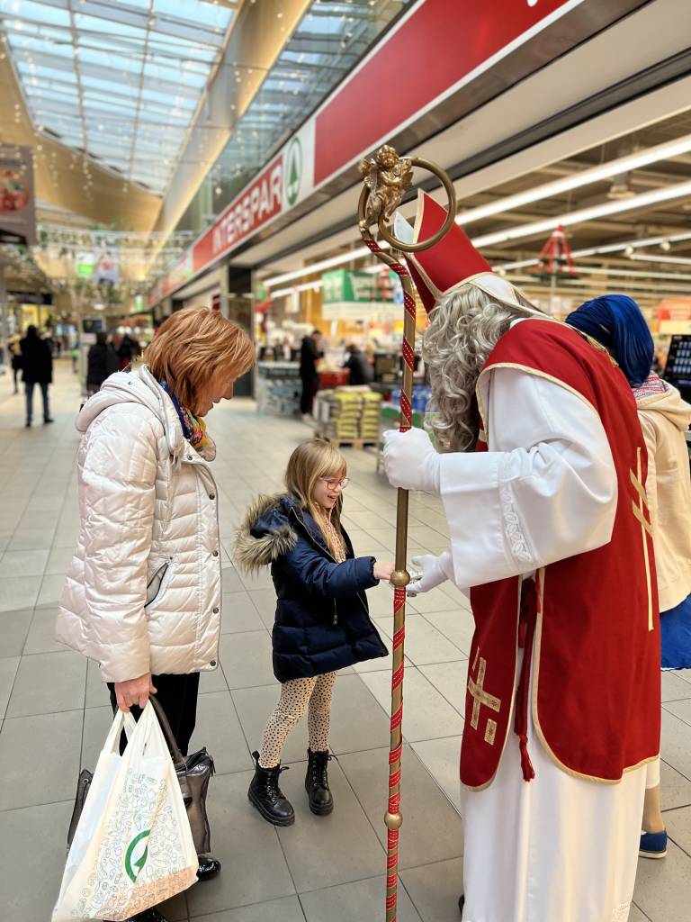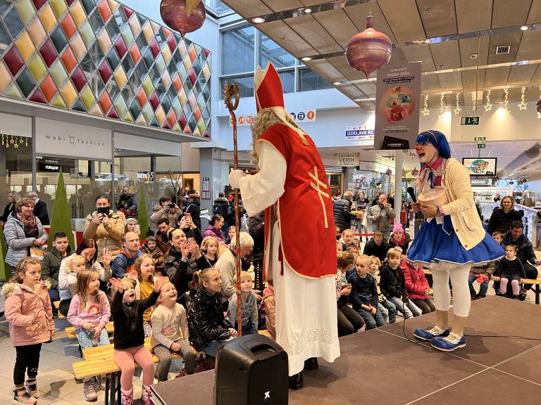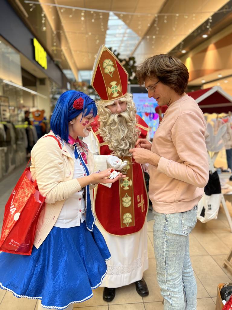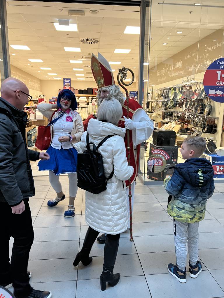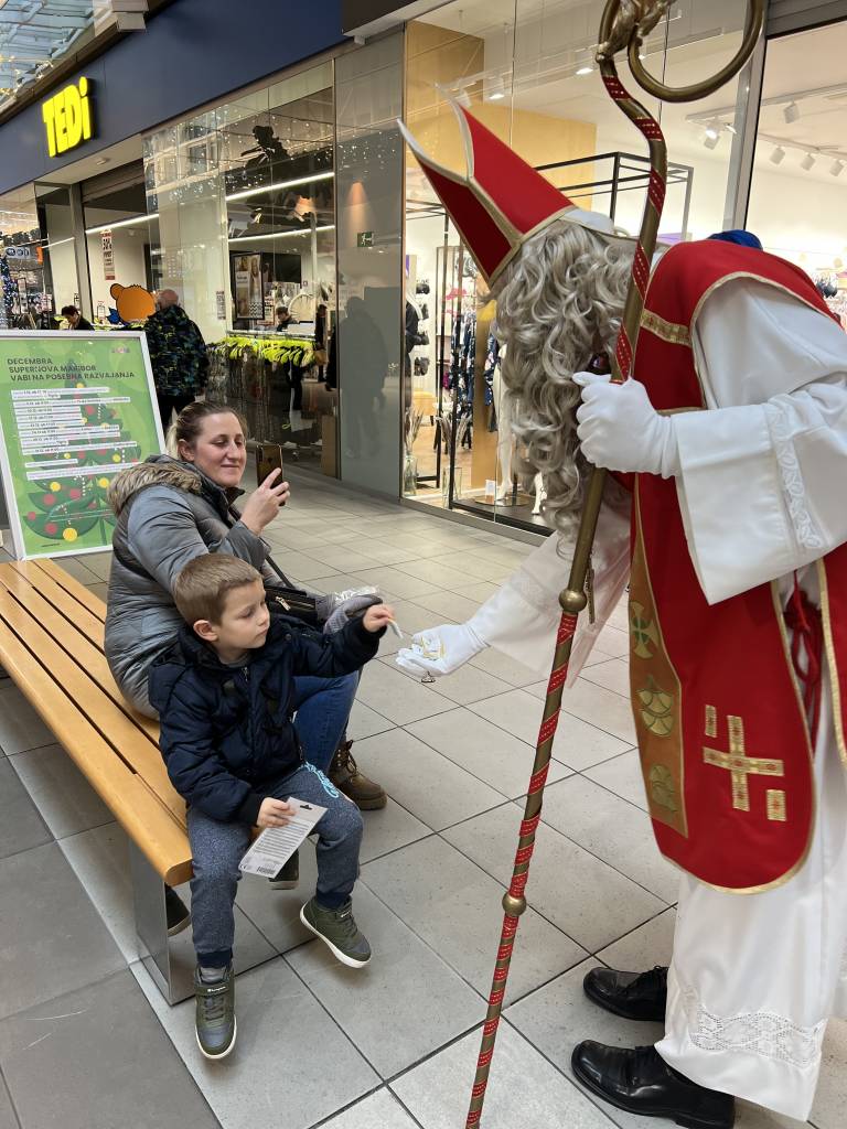 S pomočjo otrok je uspelo! Miklavž in Tinka Šminka sta se tudi sprehodila po trgovskem centru in pozdravila obiskovalce centra ter zaposlene v trgovinah, jim zaželela prelepe praznike in jim razdelila čokoladice.