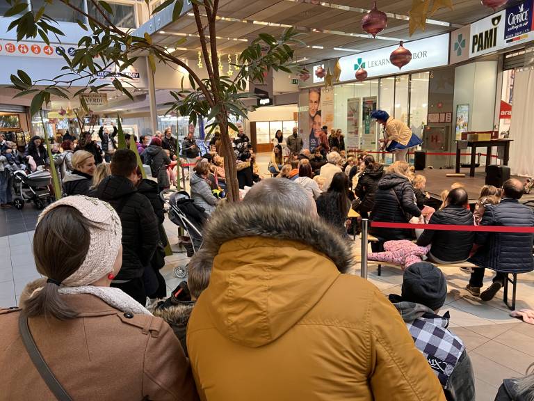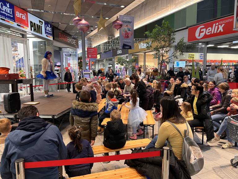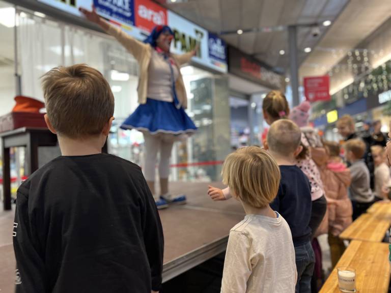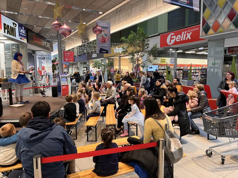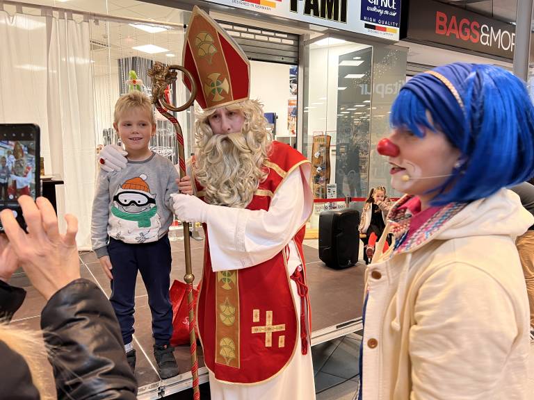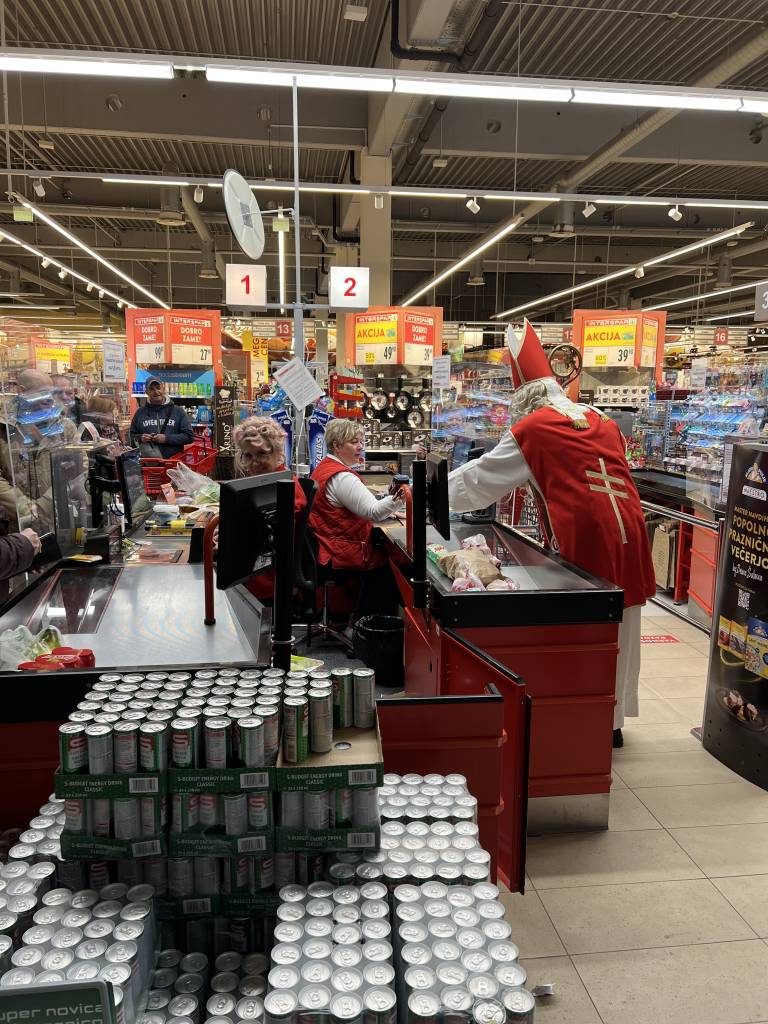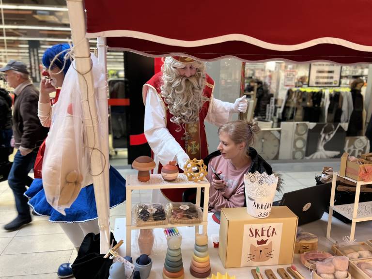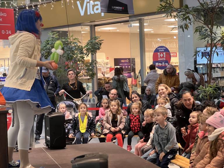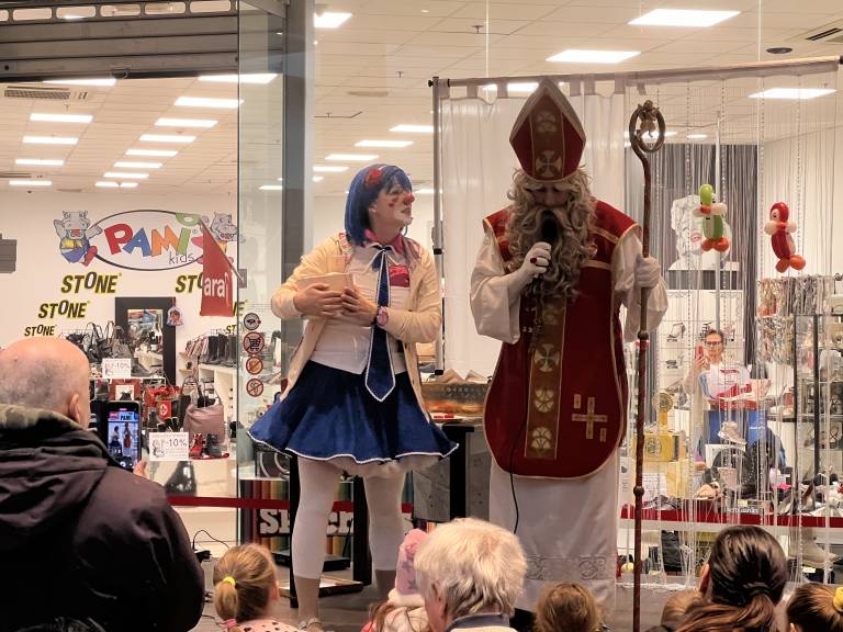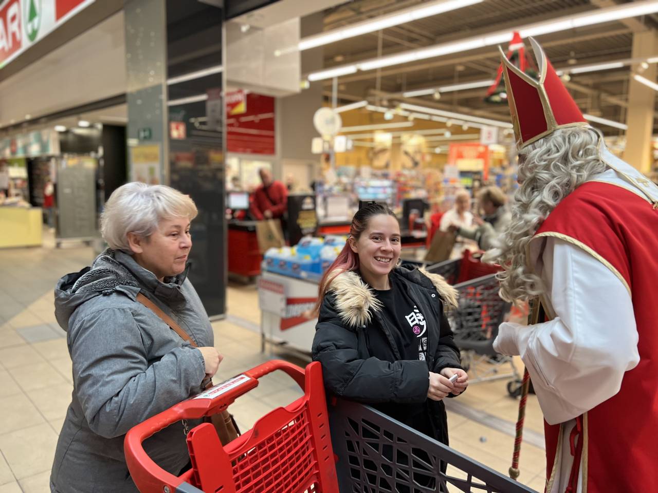 S pomočjo otrok je uspelo! Miklavž in Tinka Šminka sta se tudi sprehodila po trgovskem centru in pozdravila obiskovalce centra ter zaposlene v trgovinah, jim zaželela prelepe praznike in jim razdelila čokoladice.