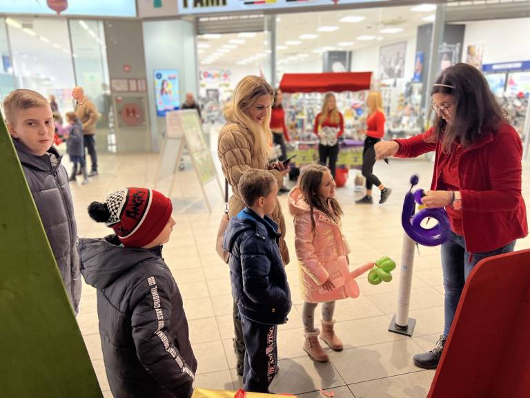 V Supernovi Maribor je animatorka obiskovalce v četrtek, 1. decembra, razveseljevala z oblikovanjem balonov, vsem obiskovalcem je hkrati voščila lepe praznike in iz balonov nastale figurice tudi podarjala.