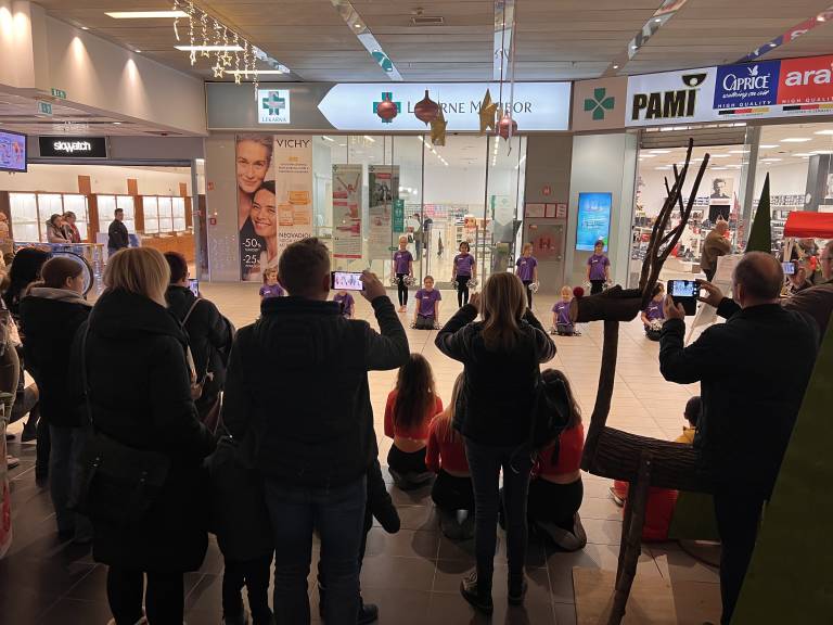Po animaciji z baloni pa je v trgovskem centru nastopilo tudi Športno društvo za plesne in navijaške skupine Oziris – Tigrice.