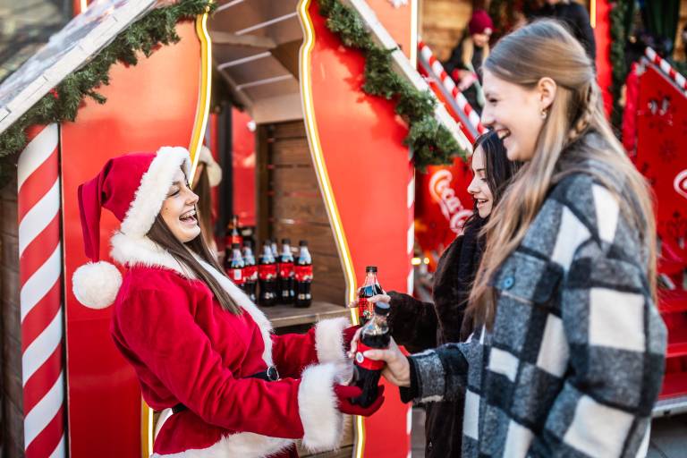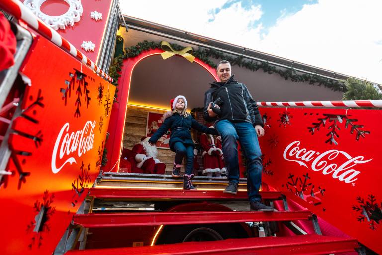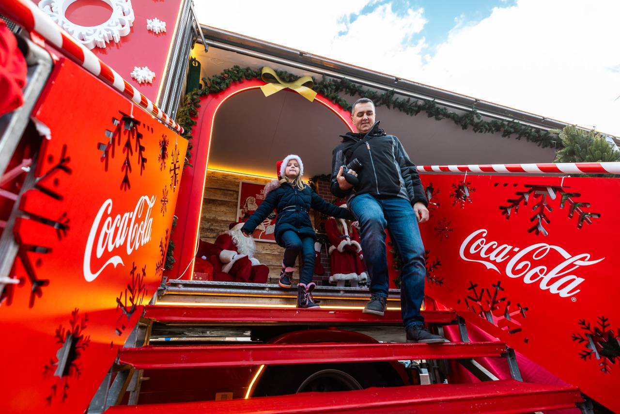 Obiskovalci so se zbrali, da bi doživeli edinstven praznični spektakel, ki ga prinaša Božiček in bleščeč tovornjak Coca-Cole.
