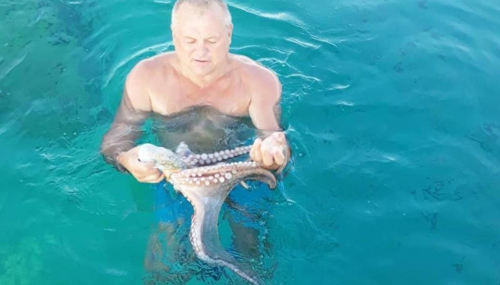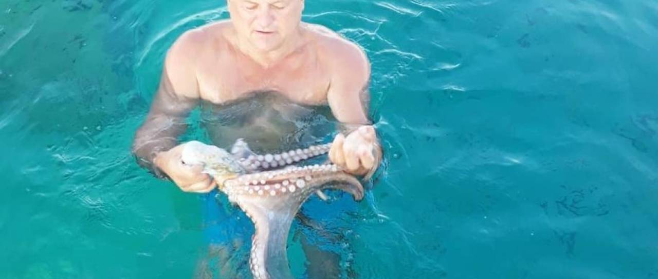 »Živemu človeku se vse zgodi. V morju se v tebe zaleti hobotnica in nikakor noče vstran,« je zapisal in priložil naslednjo fotografijo.