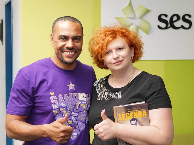 Marcos je s širokim nasmehom podpisoval izvode knjige Legenda, v kateri je opisana njegova življenjska pot od mesta Porto Alegre v Brazilji do prihoda v Maribor. Del sredstev od prodanih knjig bo namenjen humanitarnemu društvu UP-ornik za pomoč ljudem, ki so se znašli v stiski.