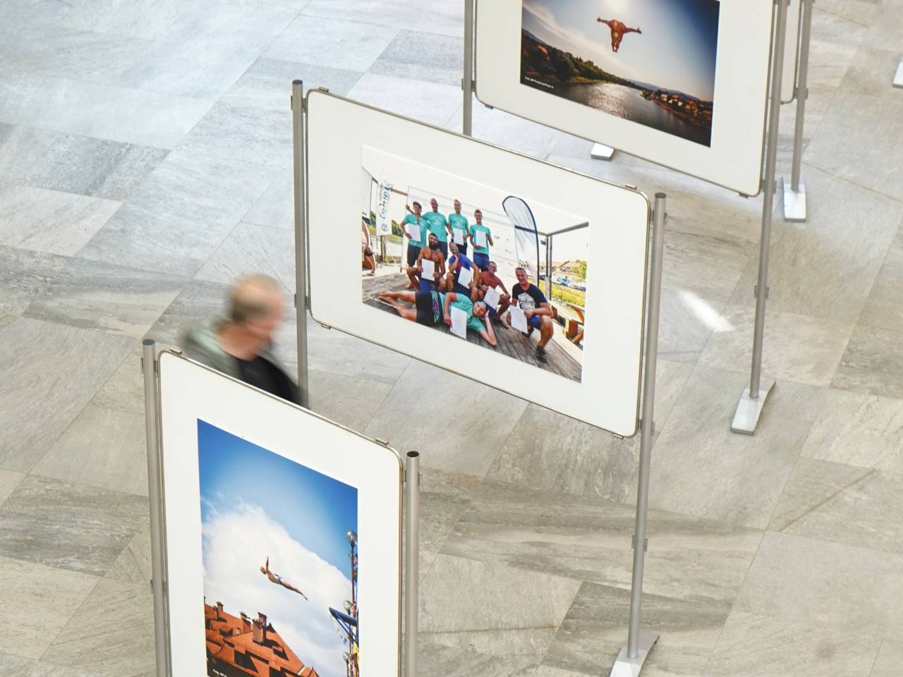 V znamenju jubileja so v Europarku pripravili fotografsko razstavo, ki prinaša izbor najlepših in najbolj vznemirljivih akrobatskih skokov v vodo.