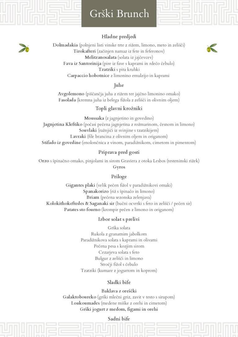 Za sladkosnede pa ne bo manjkalo baklave, galaktoboureka in slastnih loukoumades – medenih mišk s cimetom in orehi, ob katerih bo kraljeval grški jogurt z medom, figami in orehi.