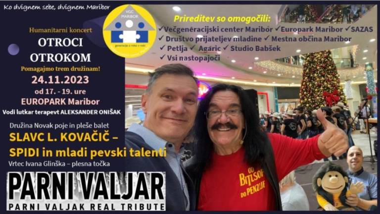 V Europarku bo ob 17. uri dobrodelni koncert »Otroci otrokom«. Nastopila bosta Slavc Kovačič - Spidi in tribute band Parni valjar.