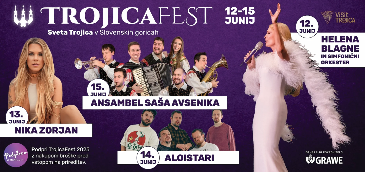Za piko na i bo zaključek TrojicaFesta 2025 ob 20. uri pripadel Ansamblu Saša Avsenika, ki bo s svojo glasbo povezal tradicijo in sodobni festivalski utrip.