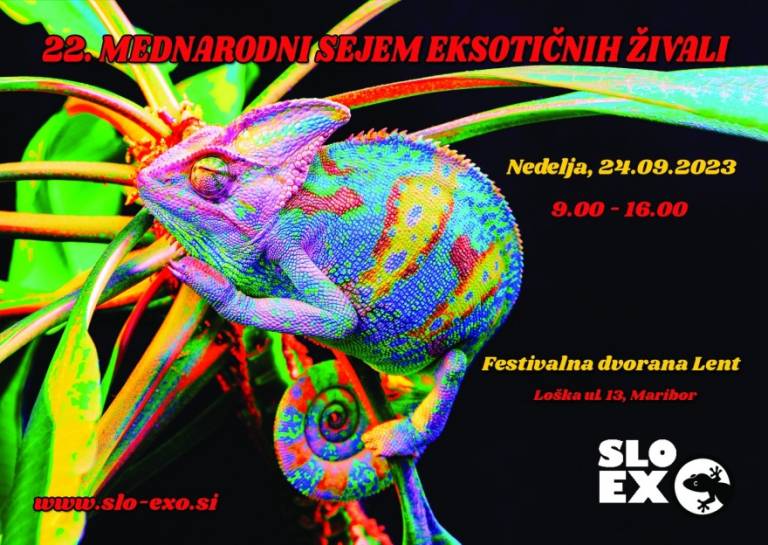 V nedeljo, 24. septembra, lahko obiščete 22. Mednarodni sejem eksotičnih živali. Od 9. do 16. ure v Festivalni dvorani Lent.