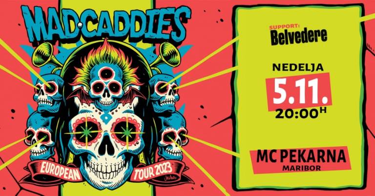 Mad Caddies prihajajo v MC Pekarna v nedeljo, 5. novembra, ob 20. uri s kanadsko predskupino Belvedere. Obeta se poslastica za vse ljubitelje reggaeja, punka, skaja in popa.