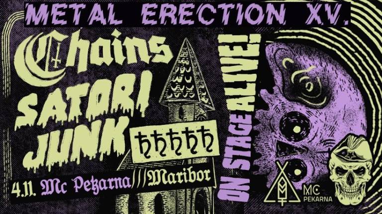 V MC Pekarna bo ob 20. uri dogodek za ljubitelje 'trših' zvokov - Metal Erection XV., v Dvorani Gustaf Pekarna pa Betrayed + Ghastly ashes - a groovy metal night.