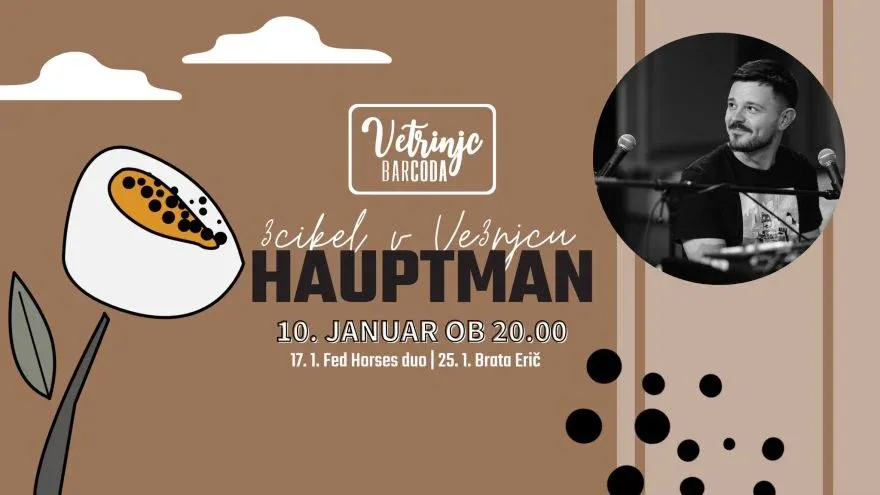 V Vetrinjc BarKoda bo ob 20. uri nastopil slovenski glasbenik Hauptman v sklopu 3cikel v Ve3njcu. V KGB-ju bo koncert Tomi Purich Balkan - jazz group ob 20. uri. V MC Pekarni pa peKARAOKE ob 21. uri.