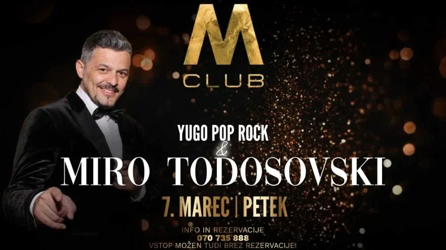 Ob 22. uri bo v M Clubu Maribor nastopil Miro Todosovski & Yugo Pop Rock, ki bo poskrbel za nepozabno zabavo.