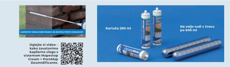 Mapestop Cream, kremasta emulzija na osnovi monomernega silana, je kemična pregrada, ki jo Mapei v večini primerov predvideva kot rešitev za sanacijo oziroma znatno zmanjšanje kapilarnega dviga pri vseh vrstah obstoječih zidov, tako kamnitih, opečnatih, betonskih kot mešanih ali iz tufa, in tudi za obnovo objektov kulturno-zgodovinskega pomena.