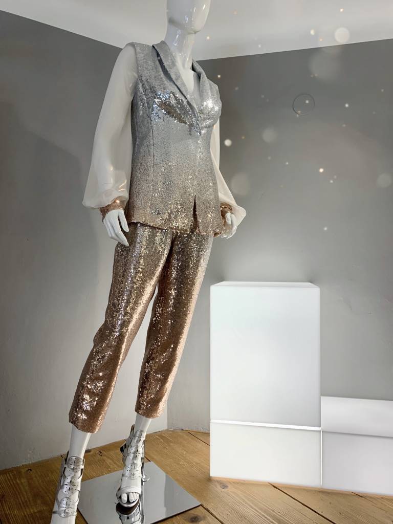 »Letošnji praznični trendi se vrtijo predvsem okrog bleščečih kombinacij modnih kosov v vseh možnih oblikah in odtenkih. Dame so lahko drzne in presenetijo s popolnoma bleščečim stylingom od glave do pet, lahko pa se odločijo za poudarek na enem kosu svetleče garderobe,« nam je zaupal Hojnik.