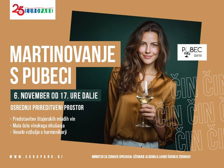 Ne zamudite martinovanja s Pubeci v Europarku v četrtek, 6. novembra 2025, od 17. ure dalje na osrednjem prireditvenem prostoru.