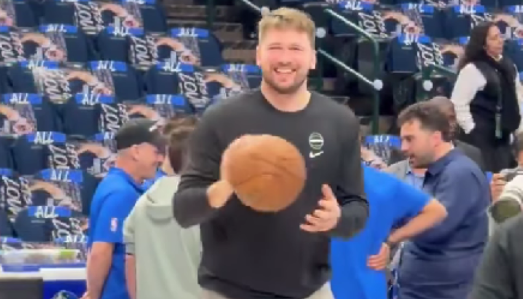 Slovenski košarkarski zvezdnik Luka Dončić je sproščeno metal žogo na koš, v ozadju pa se je slišala znana pesem hrvaške skupine E.T. z naslovom Prazan stan (prazno stanovanje).