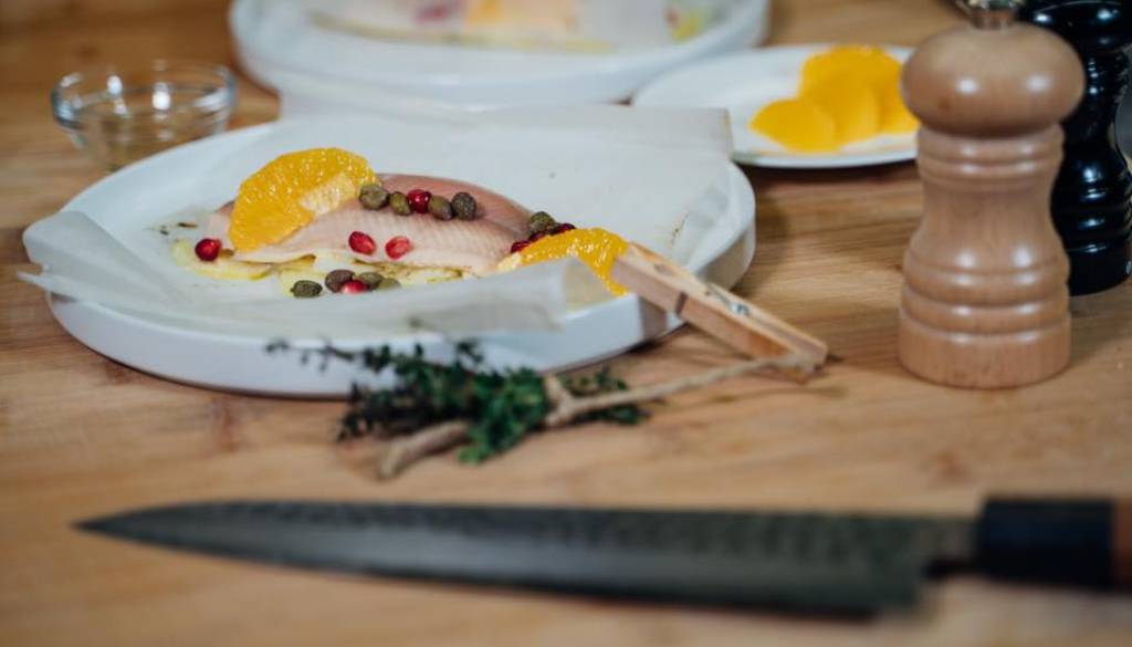 Na najbolj romantičen večer bosta tako na mizo lahko postavila odličen ribji namaz na orehovih krekerjih, sama izbrala predjed po svojem okusu, in sicer na svoj način pripravljen in začinjen vrhunski tatarski biftek ali file postrvi v pergamentu s koromačem in pomarančo, za glavno jed pa pečen file postrvi na ajdovi kaši.
