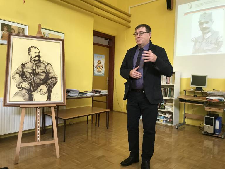 Ravnateljica je na koncu učencem predstavila še enega pomembnega gosta, in sicer predsednika domovinskega društva generala Maistra Aleša Ariha, ki je učencem bolj podrobno opisal življenje in delo Rudolfa Maistra.