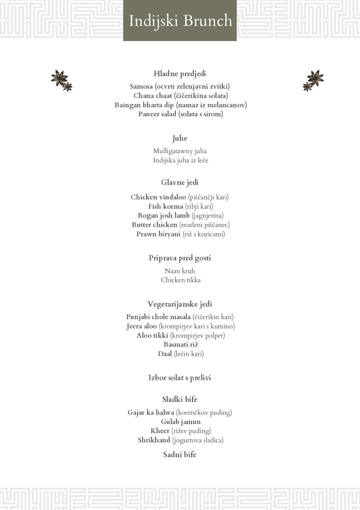 Poseben indijski brunch bo goste popeljal na popotovanje med začimbami in aromami, kjer se prepletajo bogata tradicija, živahne barve in pristno gostoljubje.