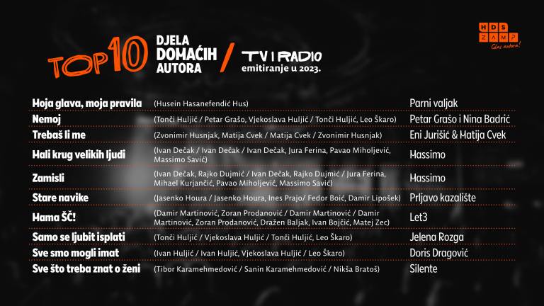 Hrvaška agencija za avtorske pravice ZAMP je razkrila, kateri glasbeniki in glasbenice so bili najbolj poslušani v lanskem letu na Hrvaškem.
